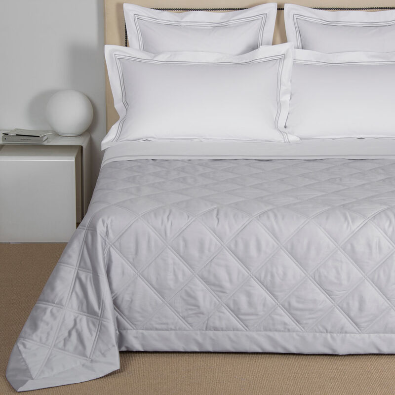 Copriletto Frette. Un copriletto è il modo più semplice per rendere più calda e accogliente la tua camera da letto. Il copriletto illusione presenta un elegante motivo di rombi intrecciati che creano un piacevole effetto tridimensionale, il capo Ë rifinito da un importante bordo in seta in tono.